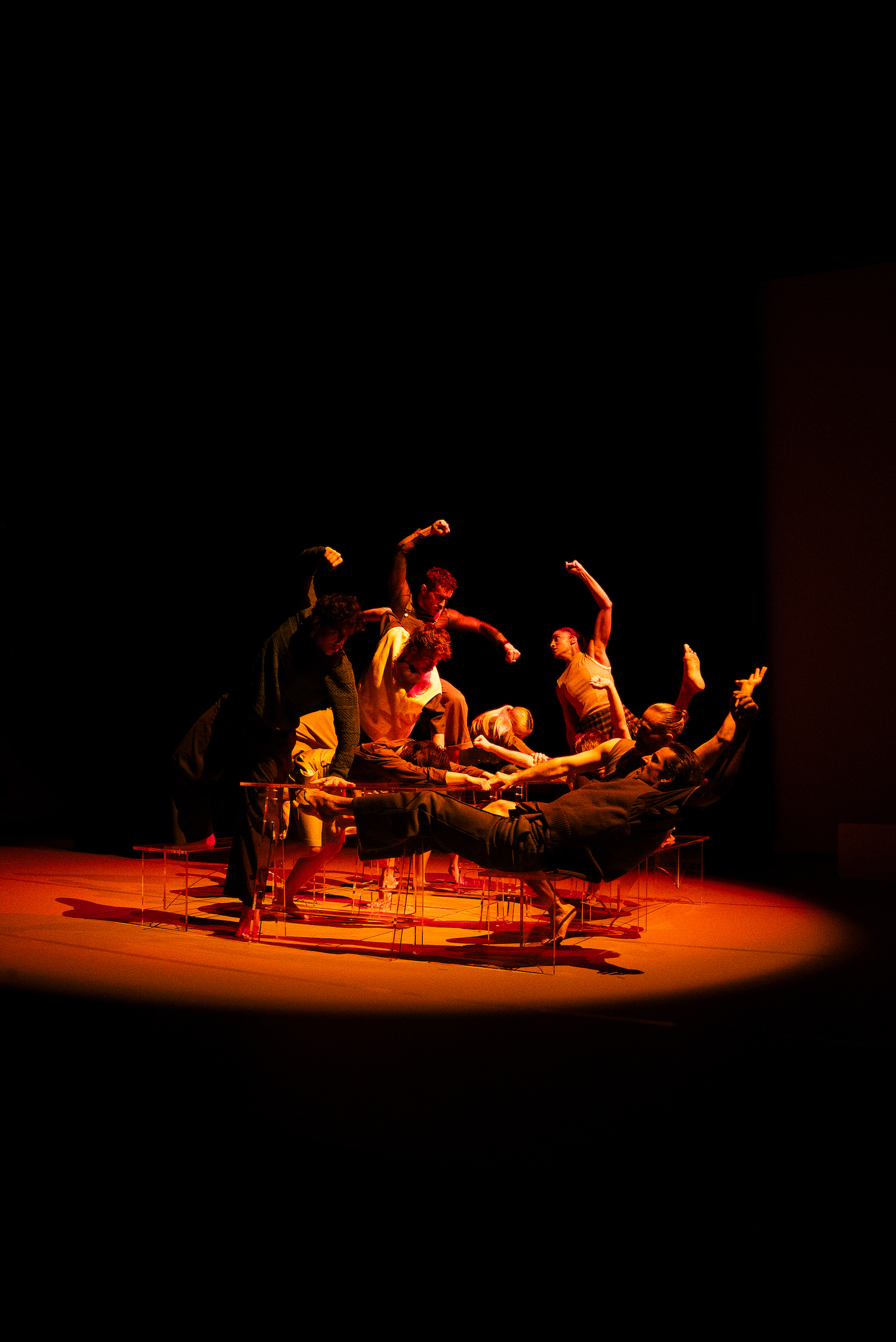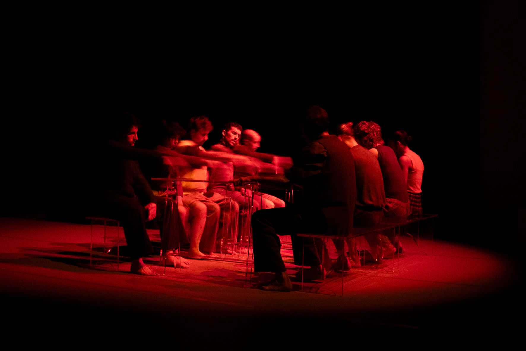 Dans le Grand Dîner, la chorégraphe Manon Bouquet prolonge ses explorations sur l'échange social, en suivant le flux et le reflux des émotions échangées lors d’un repas entre proches. Contrairement aux images de convivialité et aux conversations intimes savourées entre deux bouchées, les rassemblements à table peuvent rapidement dégénérer en chaos. Sur une table impeccablement dressée, les communications fracturées et les relations effilochées vont atteindre leur paroxysme.